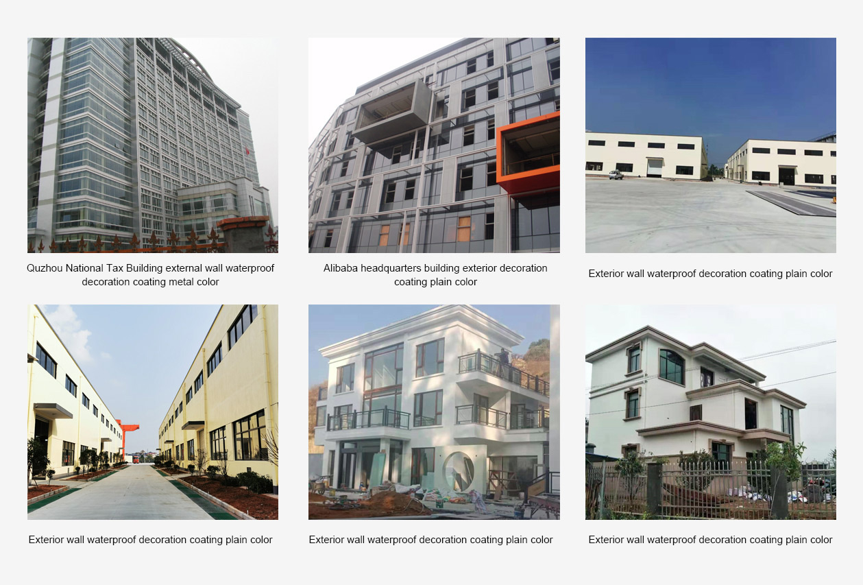 Features     : It has better aging resistance and super water resistance than ordinary exterior wall coatings, with a service life of more than 20 years, no fading, anti-ultraviolet, no leakage, no staining, and can effectively prevent the erosion of acid rain in the atmosphere .